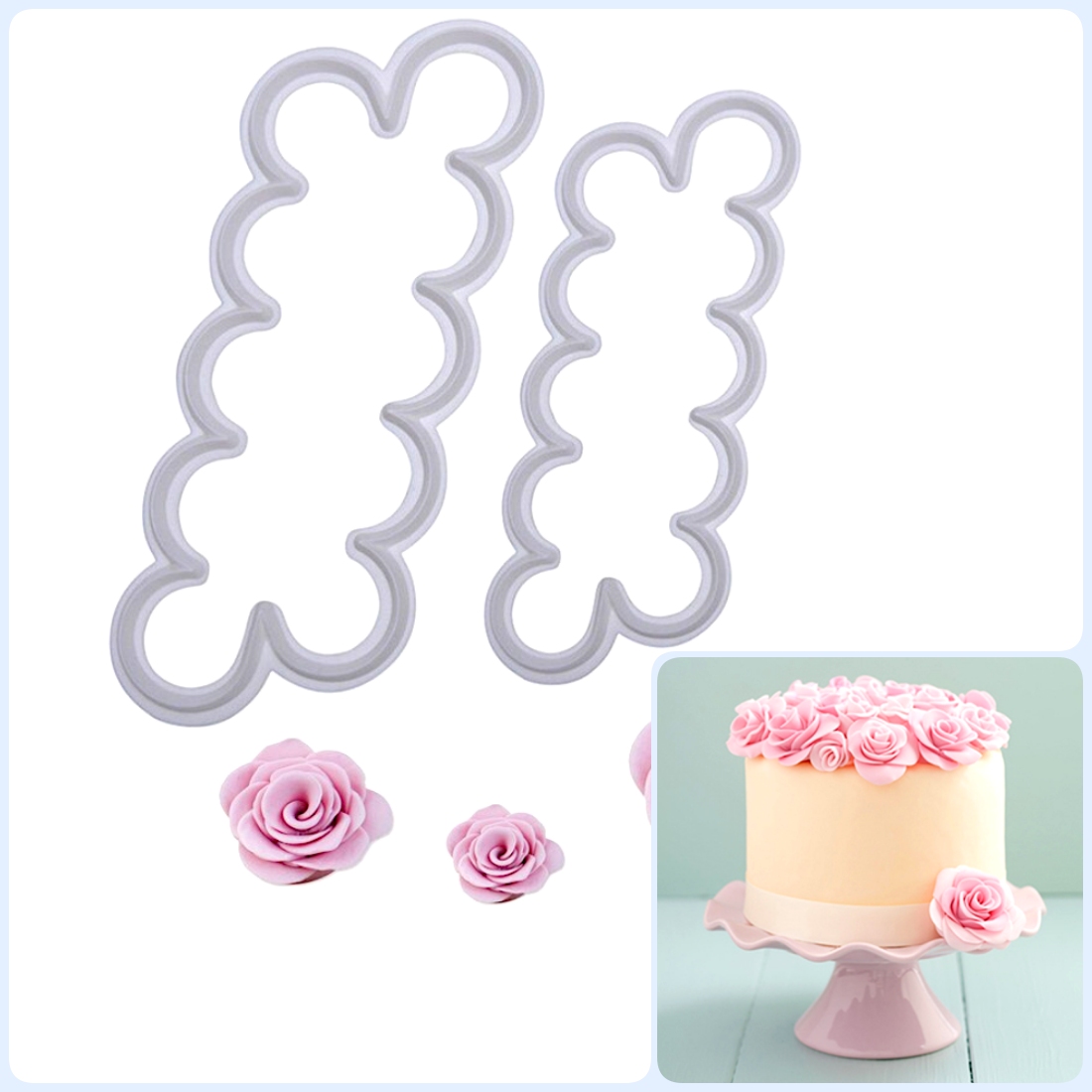 Это специальные вырубки, чтобы вы легко и быстро смогли сделать розу из сахарной пасты, марципана или шоколада чем когда-либо прежде!