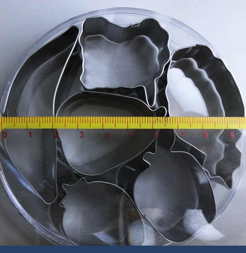 Сверху на фигуре сделан ободок, для предотвращения врезания в руки при надавливании. Упаковка: пластиковая коробка. Изготовлены из нержавеющей стали. Не требуют особого ухода, промойте в тёплой воде с минимальным использованием моющих средств. При бережном отношении набор вырубок простужит вам очень долго.